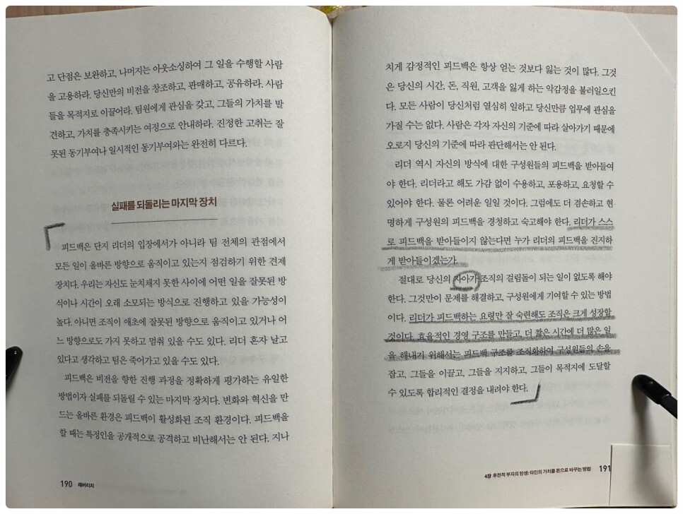 리더가 스스로 피드백을 받아 들이지 않는다면 누가 리더의 피드백을 받아들이겠는가. 191P